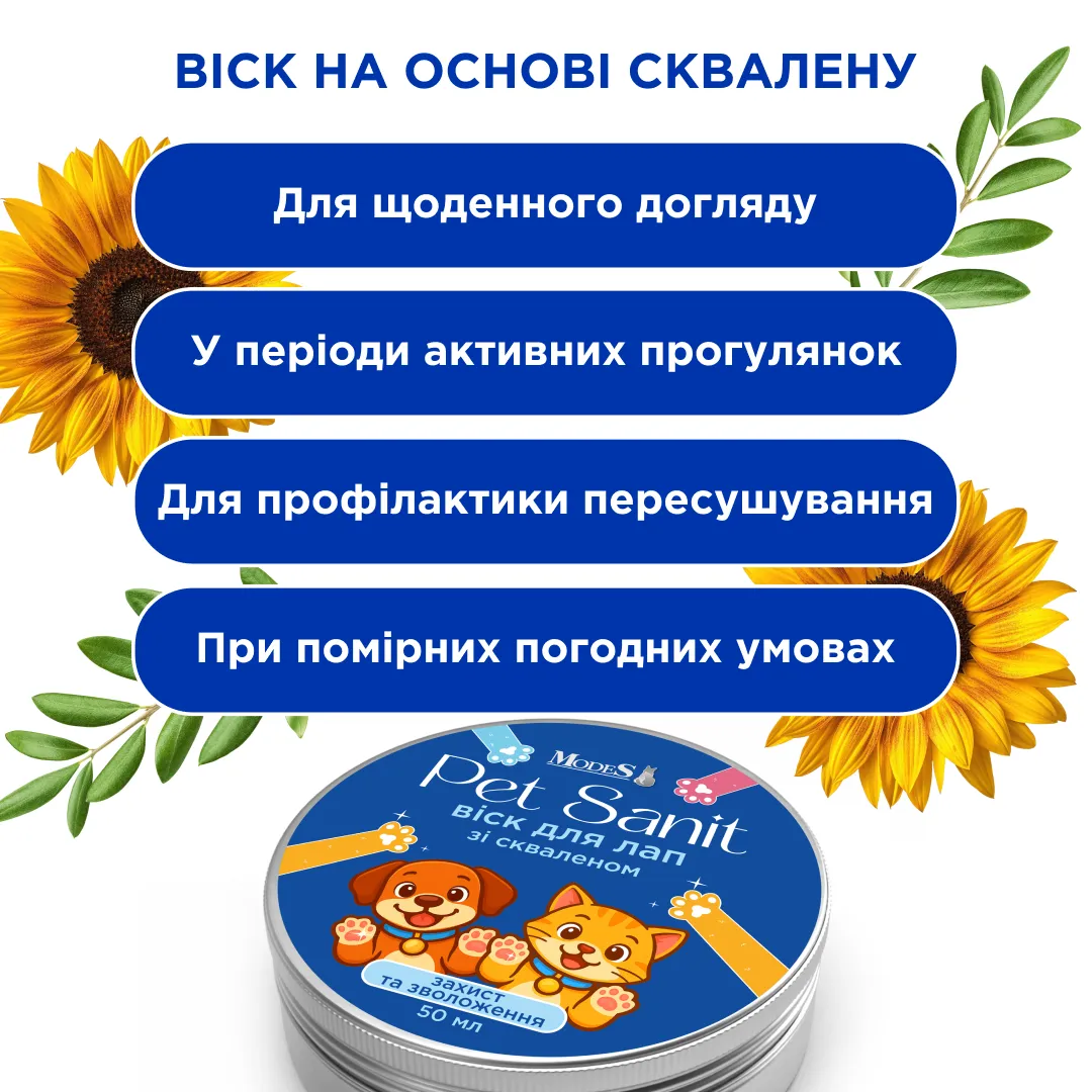 Наші чотирилапі вихованці — найвірніші друзі. Вони готові бігти за нами хоч на край світу, але їхні лапки не залізні. Гарячий асфальт, сніг, лід чи реагенти, якими посипають дороги під час ожеледиці, — справжні вороги для них. Ніжні лапки наших котиків чи песиків можуть тріскатися, страждати від обморожень чи опіків, а сіль та реагенти на дорогах загрожують болючим подразненням. Тому в будь-яку пору року лапки наших улюбленців потребують особливого захисту, і їм на допомогу приходить віск для лап — натуральний бар'єр від усіх негараздів на основі сквалену чи бджолиного воску.