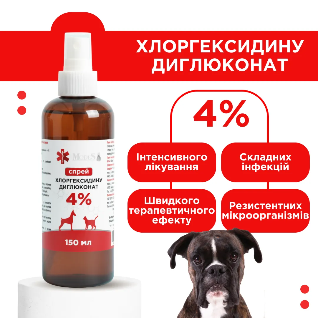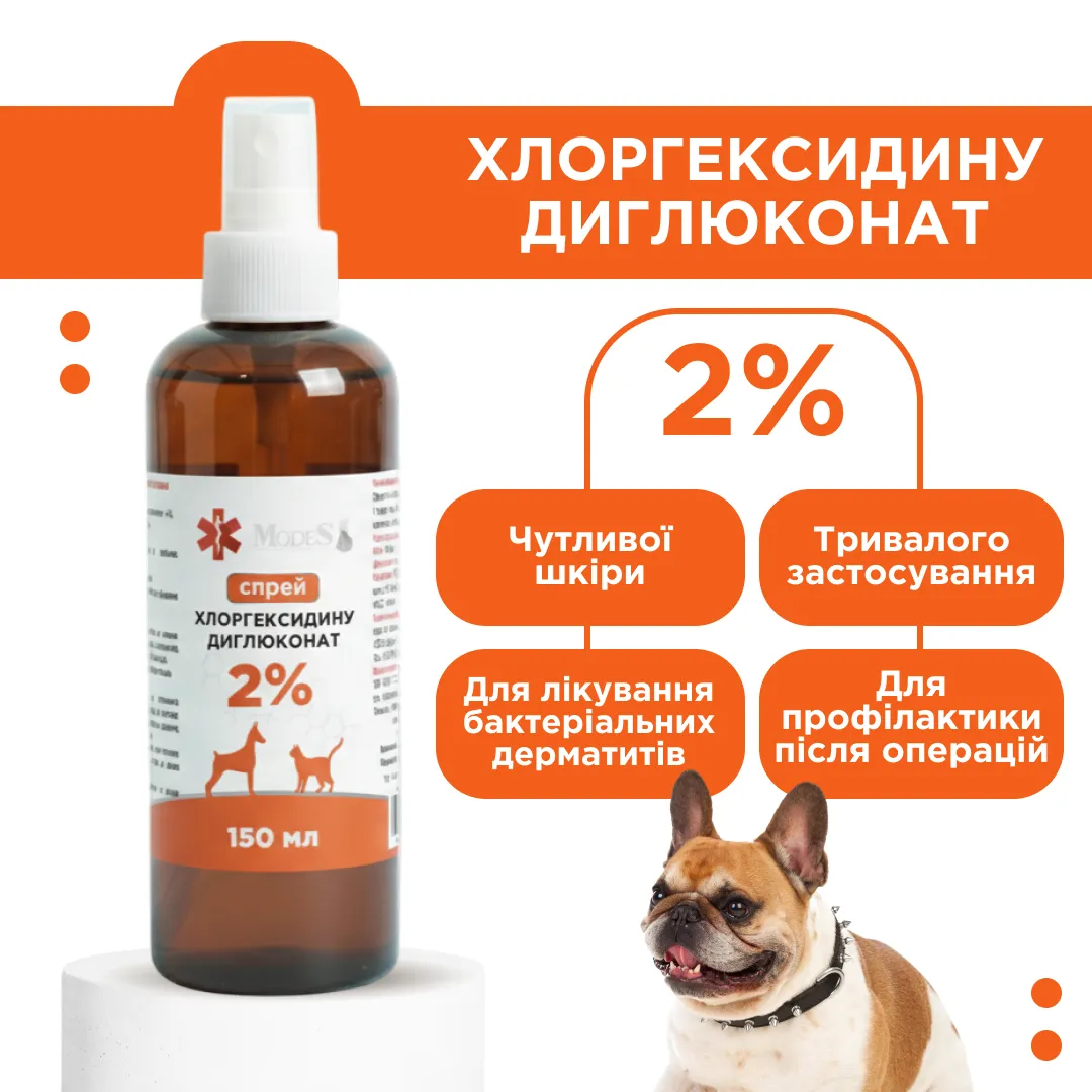 Для лікувальної обробки, профілактики, дезінфекції шкіри та поверхневих ран можна використовувати більш концентрований розчин хлоргексидину — 2%-вий. Він має більш виражену дію у порівнянні з 1%-ним розчином, але за потреби його можна застосовувати як курсами, так і тривалий час без шкоди для здоров'я вихованця.