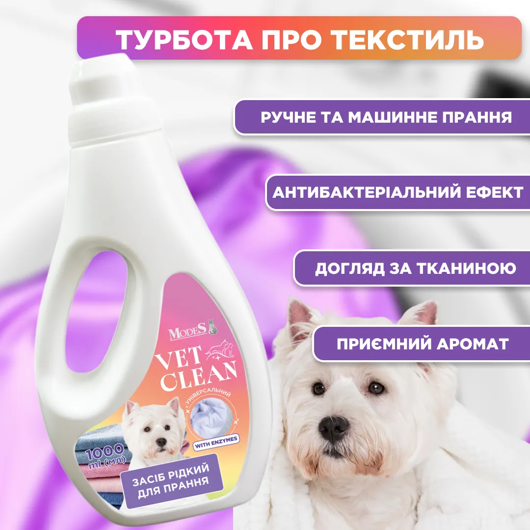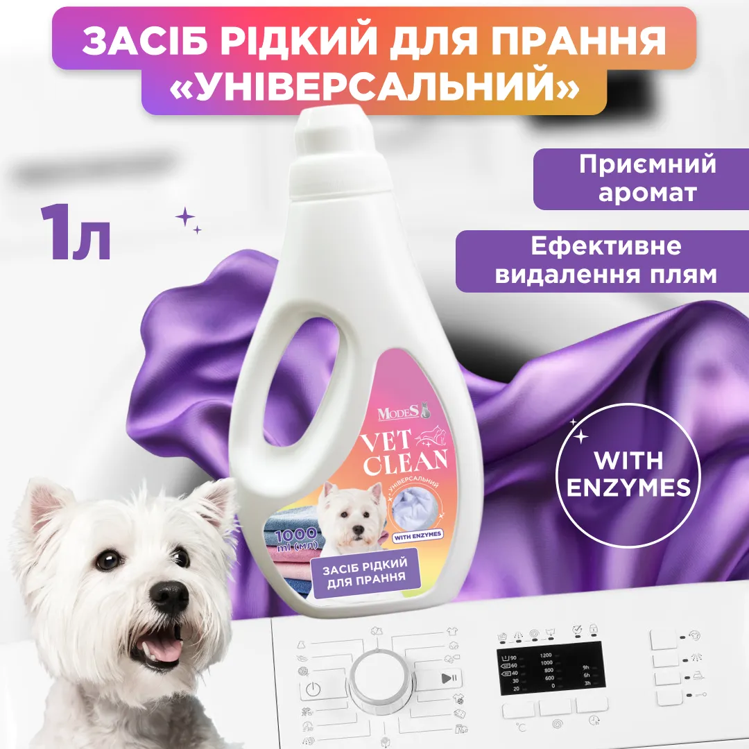 Ви колись замислювалися, чому після прання звичайним порошком підстилка вашого песика все одно пахне песиком або чому улюблена чорна футболка після зустрічі з пухнастим муркотуном перетворюється на виставку біоматеріалів? Саме тут на сцену виходить VET CLEAN «Універсальний» від Modes — рідкий засіб для прання, який знає, як подолати плями, запахи й при цьому зберегти тканину м’якою та приємною. З ним ви можете забути про «аромати природи» та плями невідомого походження, а ваш одяг знову стане як новенький, а не буде виглядати як улюблене місце кота.