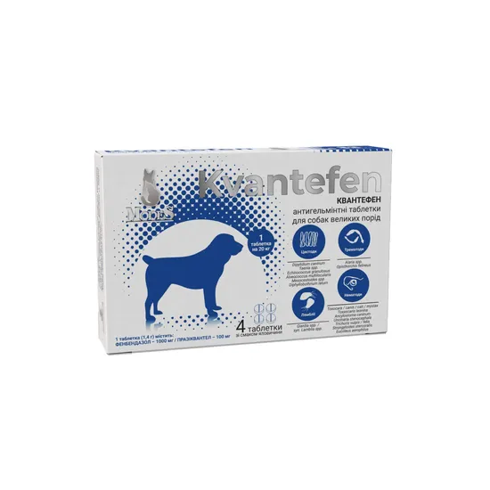 КВАНТЕФЕН (Kvantefen) антигельмінтні таблетки для собак великих порід, 1 таб на 20кг (4 табл.), MODES (від гельмінтів)