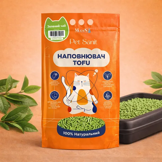 Наповнювач Tofu - зелений чай 2,6 кг, 6 л, ПетСаніт (PetSanit), MODES