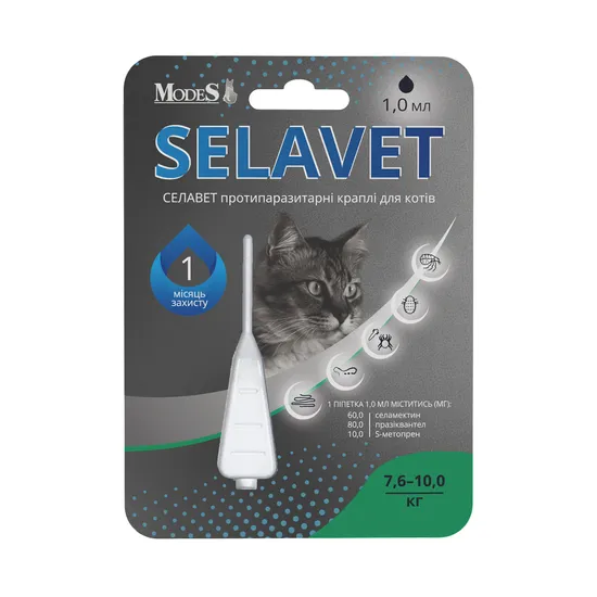 Селавет (Selavet) протипаразитні краплі для котів від 7,6 кг до 10 кг, 1,0 мл, MODES