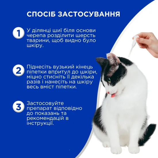 Для котів та собак різної маси тіла використовують піпетки з препаратом відповідного об′єму.