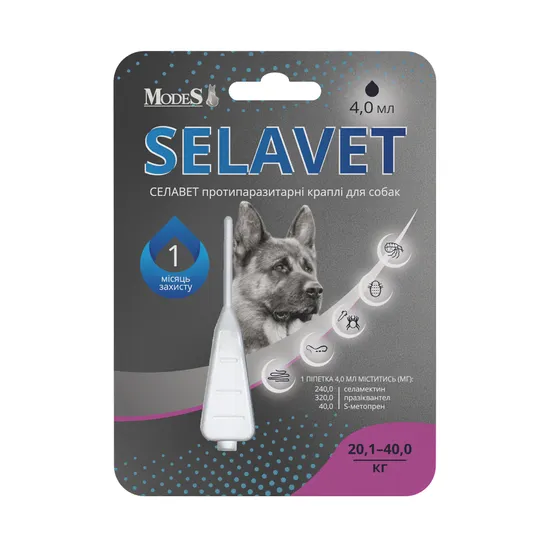 Селавет (Selavet) протипаразитні краплі для собак від 20,1 кг до 40,0 кг, 4,0 мл, MODES