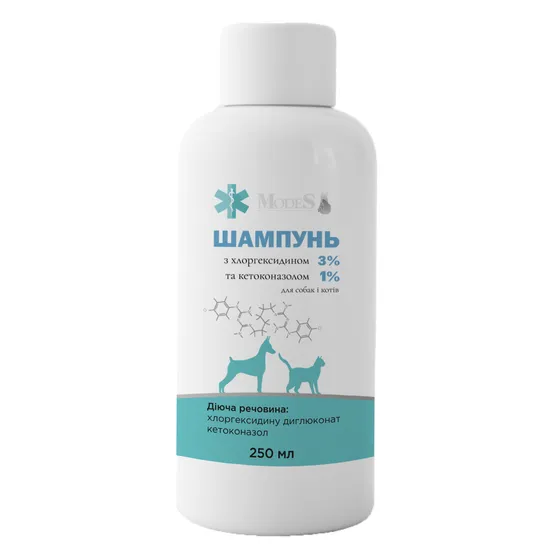 Шампунь антибактеріальний з хлоргексидином 3% і кетоконазолом 1% для собак і котів, 250 мл, MODES