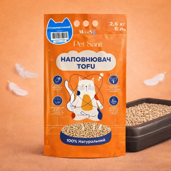 Наповнювач Tofu - гіпоалергенний 2,6 кг, 6 л, ПетСаніт (PetSanit), MODES