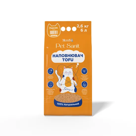 Наповнювач Tofu - персик 2,6 кг, 6 л, ПетСаніт (PetSanit), MODES